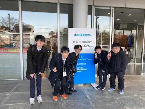 富山国際会議場で行われた, 第13回計測自動制御学会制御部門マルチシンポジウム にて,本研究室の学生6名が研究発表を行いました.